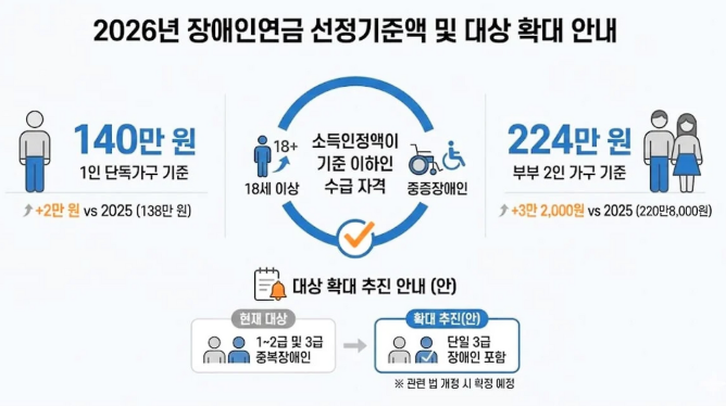 2026년 장애인연금 2.1% 인상으로